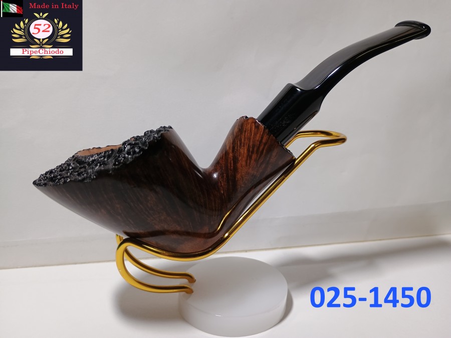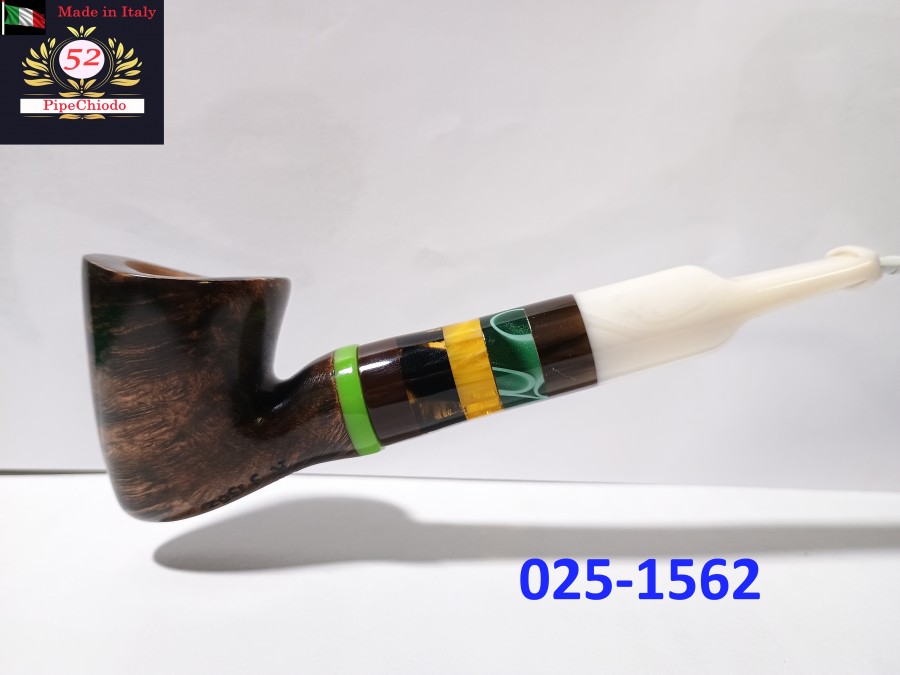 Radica di erica prov. Calabria, Bollitura 16 ore, stagionatura 6 anni, bocchino metacrilato, Lunga 150 mm. Fornello: Diametro esterno 40 mm, H59 mm, Diametro Foro 19, PF 45mm. Peso 48