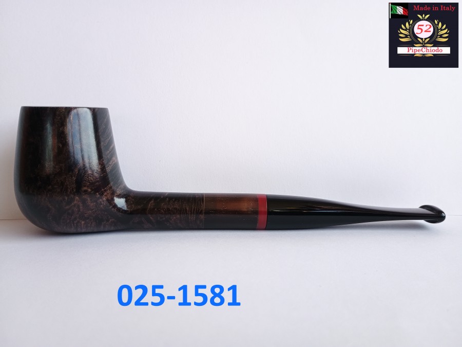 Radica di erica prov. Calabria, Bollitura 16 ore, stagionatura 8 anni, bocchino metacrilato, Lunga 136 mm. Fornello: Diametro esterno 42 mm, H40 mm, Diametro Foro 18, PF 31 mm. Peso 40 g